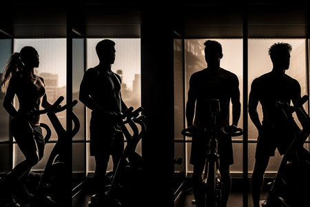 Robust silhouettes in a bodybuilding gym, seeking physical excellence., generative AI