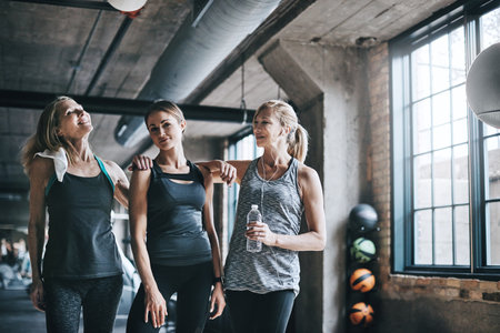 Catching up after fitness class. Cropped portrait of three attractive and athletic women working out in the gym.