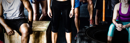 Group of young people smiling and looking happy in casual sports clothes and exercise clothes In the group photo in Gym.