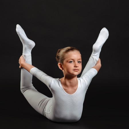 warm up for flexibility. workout in sport club. healthy child training. fitness kid wear sportswear. acrobatics. teenage girl stretching. happy childhood. future of sport