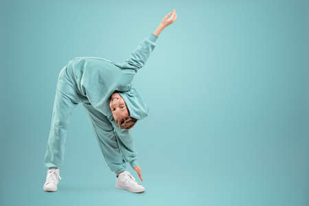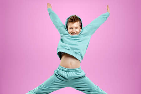 success. Childhood activity. Fitness diet. Energy. Sport and health. Gymnastics. Happy child sportsman. Acrobatics gym workout of teen girl. Striking the pose. her body is perfect. Warming up