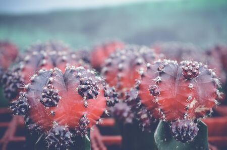 Close-up group of colorful Gymnocalycium mihanovichii. Cactus are popular with thorns and are highly resistant to drought. Cactus is a botanically multi-species tree.