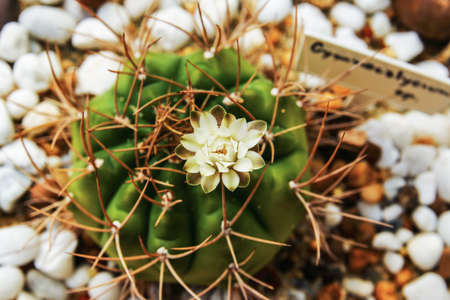 A small beautiful cactus (gymnocalycium) in the garden.