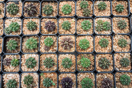 Colorful of beautiful cactus or succulents in the pot pattern background. This plant used for decoration home, office, living room or garden.