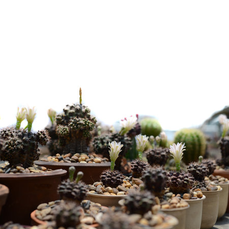 Gymnocalycium cactus in pots with copy space