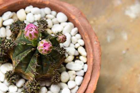 Beautiful cactus in flowerpot with sunlight for background and texture.