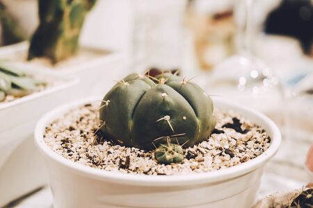 close-up Gymnocalycium cactus pot plant