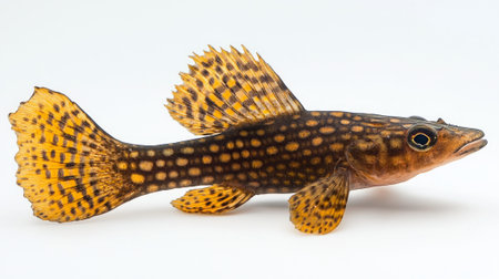 Bristlenose Pleco a freshwater fish species known for its unique appearance displays its vibrant colors and intricate patterns against a clear white backdrop.