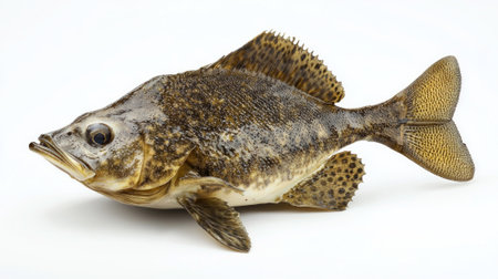 Monkfish Lophius piscatorius is displayed against a pristine white background showcasing its distinct appearance and textures emphasizing its remarkable adaptations for survival.