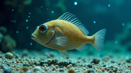 a fish swimming in a home aquarium, created with generative ai