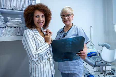 Doctor showing the xray results to the female patient