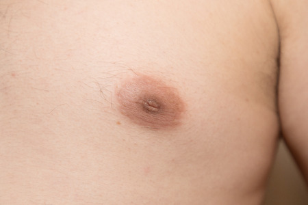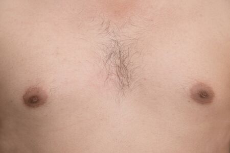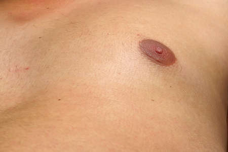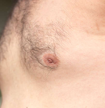 Close up of a young man nipple. Selective focus. Human skin