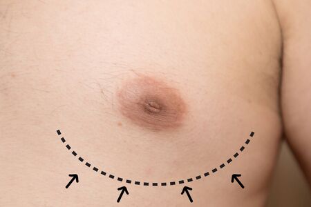 draw line on a man breast for boobs plastic surgery