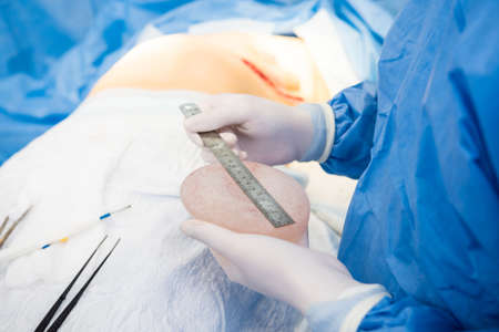 Surgical operation abdominoplasty. Surgical removal of fat tissue from the abdomen