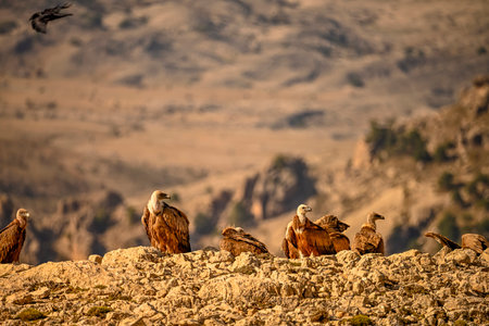 Griffon vultures or Gyps fulvus perched on the mountain