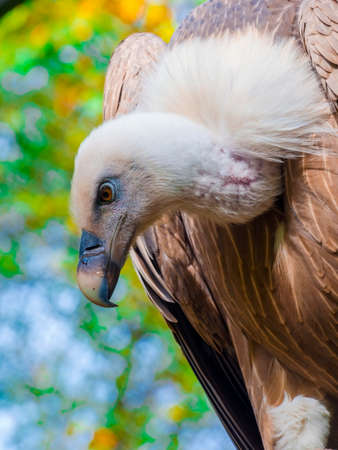 Head of an European griffon vulture in a forest