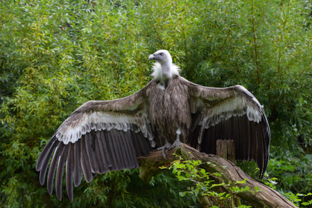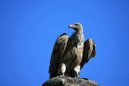 Vulture ready for the flight. Vultures seldom attack healthy animals, but may kill the wounded or sick. When a carcass has too thick a hide for its beak to open, it waits for a larger scavenger to eat first.