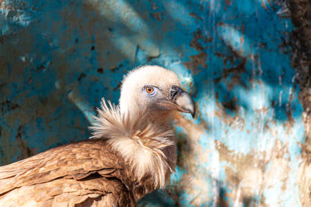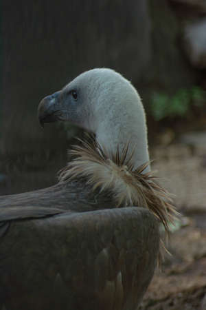 Portrait of a vulture in a park in the mountains.