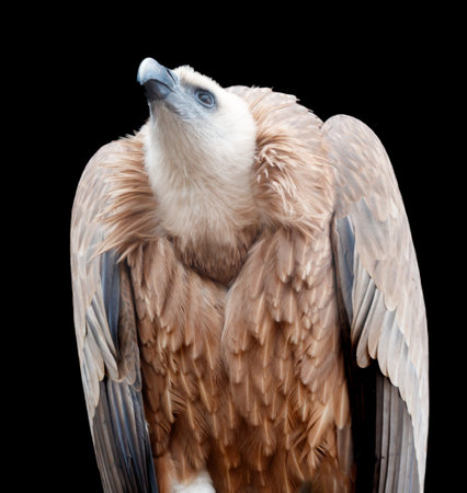 Portrait of a griffon vulture Gyps fulvus, isolated on black background