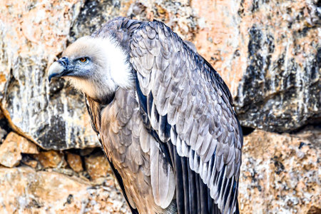 Eagles family vultures portrait on stone background. Close-up. Unrecognizable place. Selective focus