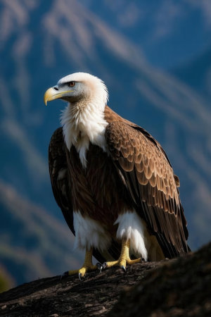 White-tailed eagle and vulture with feathers, wings, and beaks displayed in a wild animal portrait