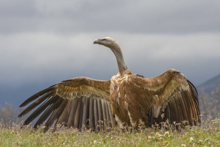 Griffon vulture (Gyps fulvus) looks around and looks for food for himself