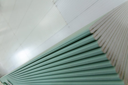 Stacks of new drywall in soft lighting showcasing texture and detail