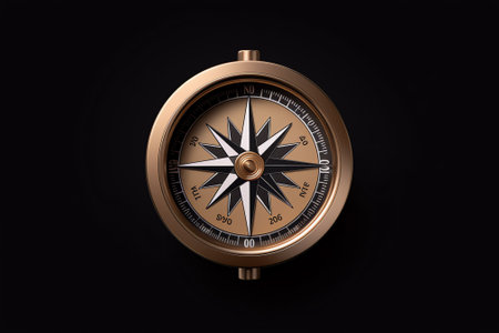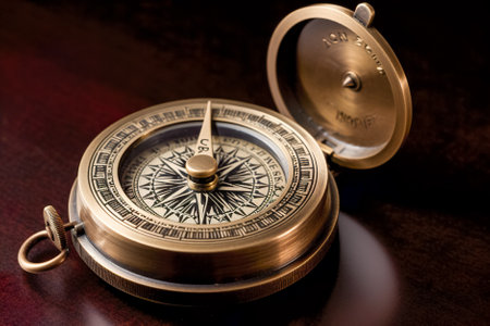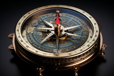 Elegant antique compass with intricate details captured on a dark backdrop, symbolizing navigation and discovery