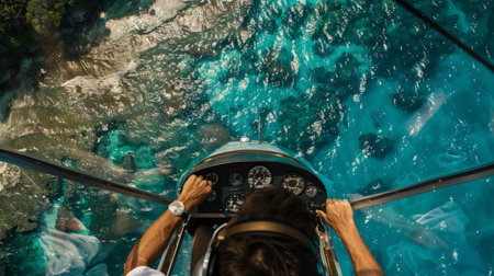 Pilot in the Cockpit of a Helicopter back view. Generative AI