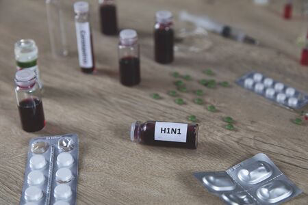 ampoule of H1N1 and drug on table