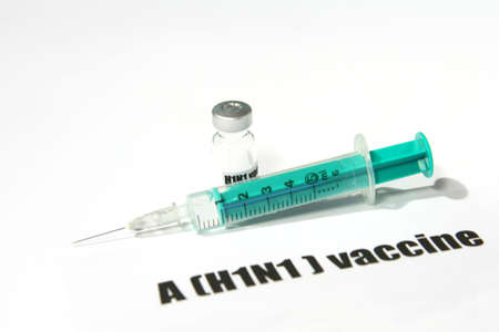 Swine FLU H1N1 disease - syringe and vaccine on white background