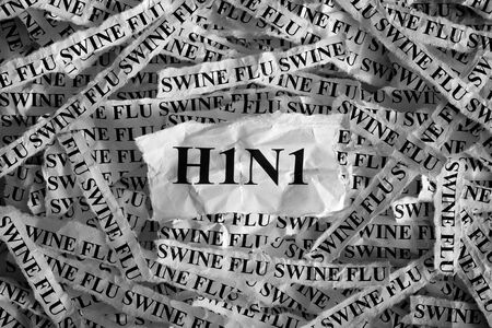 H1N1- Swine Flu. Torn pieces of paper with the words H1N1- Swine Flu. Concept Image. Black and White. Closeup.