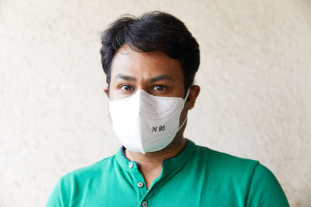 Man with protective 3M medical mask. 3M Aura 9312. The face mask used in the COVID-19 global pandemic as a protection against coronavirus in Bucharest, Romania, 2020