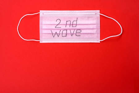 Covid 19 second wave. Covid 19. Medical mask on colors background and the inscription Covid 19 second wave