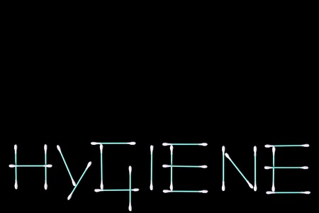 The word 'hygiene' composed of turquoise cotton swabs isolated on black
