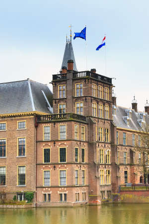 The Hague's Binnenhof with the Hofvijver in the Hague, the Netherlands. This building houses the meeting place of both houses of the States General.