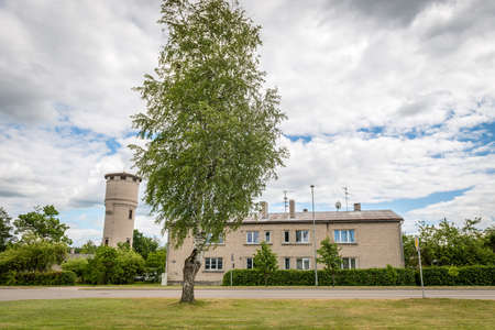 Estonia, Sillamee. 05.28.2022. A small cozy European town on the shores of the Baltic Sea. Northeast Estonia. Sillamee. Hotel and restaurant next to the old historical building of the city government