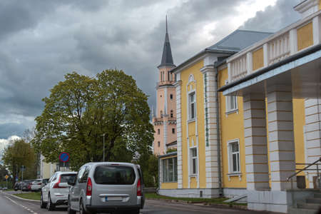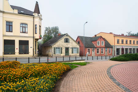 LATVIA, SALDUS - 19 SEPTEMBER: Saldus is a Latvian town. View to the center street with old weathered houses on 19 September 2020, Saldus, Latvia.