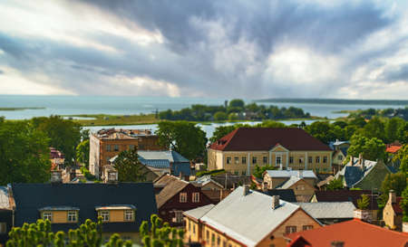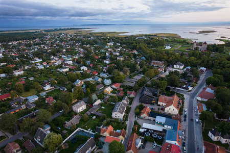 An aerial view of Kuressaare city in Saaremaa island during late August evening.