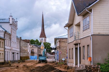 Rakvere, Estonia, June 27: Construction work on the reconstruction of the pavement of PIK street in the old town of Rakvere, June 27, 2019.