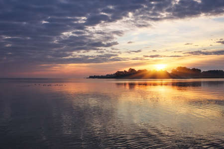 Dawn over the summer sea bay