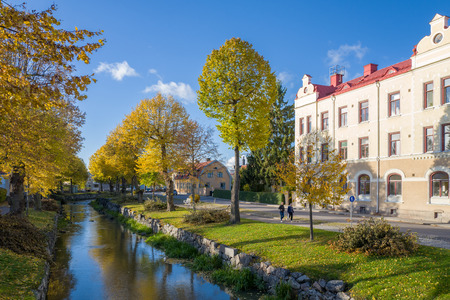Soderkoping, Sweden - October 25, 2015: A sunny and colorful autumn day in Soderkoping. Soderkoping is a small old historic and idyllic town in Sweden.