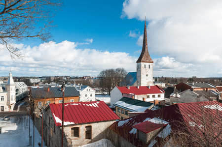 Landscape of old Rakvere with the Holy Trinity Church. Clock tower. Estonia