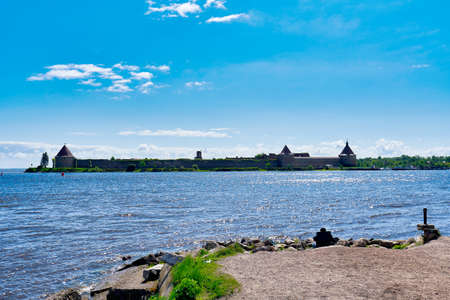View of the Royal watchtower. Oreshek Fortress. Shlisselburg Fortress near the St. Petersburg, Russia. Founded in 1323.