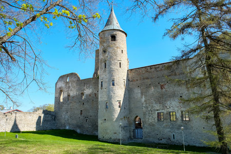 Rakvere, Estonia, Landscape with medieval Rakvere castle, sunny spring day.Castle of 14th century. Castle, and the museum houses exhibits on weapons, medieval torture, and the history of the Livonian Order.