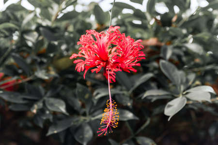Hibiscus flower on natural bokeh background.