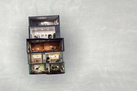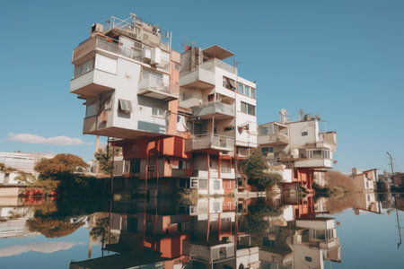 Colorful stacked apartment building. Generative AI