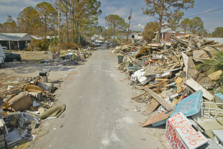 Road to total destruction, rubble and debris from homes hit by Hurricane Ivan in Pensacola Florida