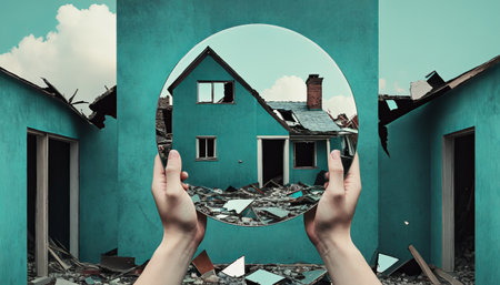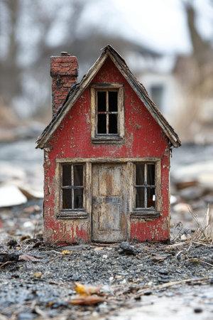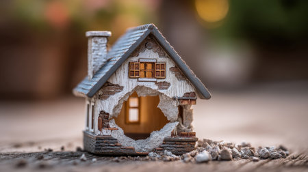 A captivating image of a miniature house shows a crumbling wall, revealing a warm interior. This evocative scene reflects themes of loss, abandonment, and resilience.
