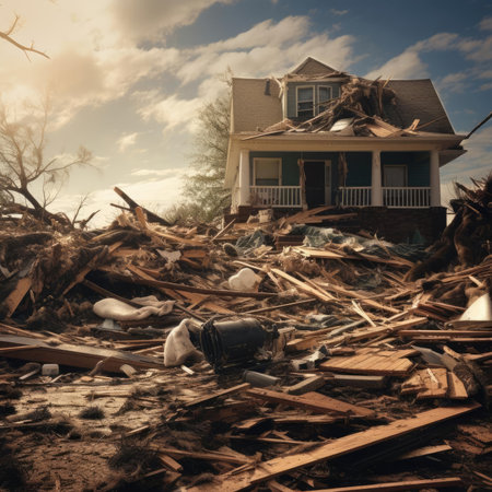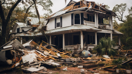 Homes ripped apart by the force of nature --ar 3:2 Job ID: 3c685de7-3cab-4672-8b7f-5e3b10192b9d